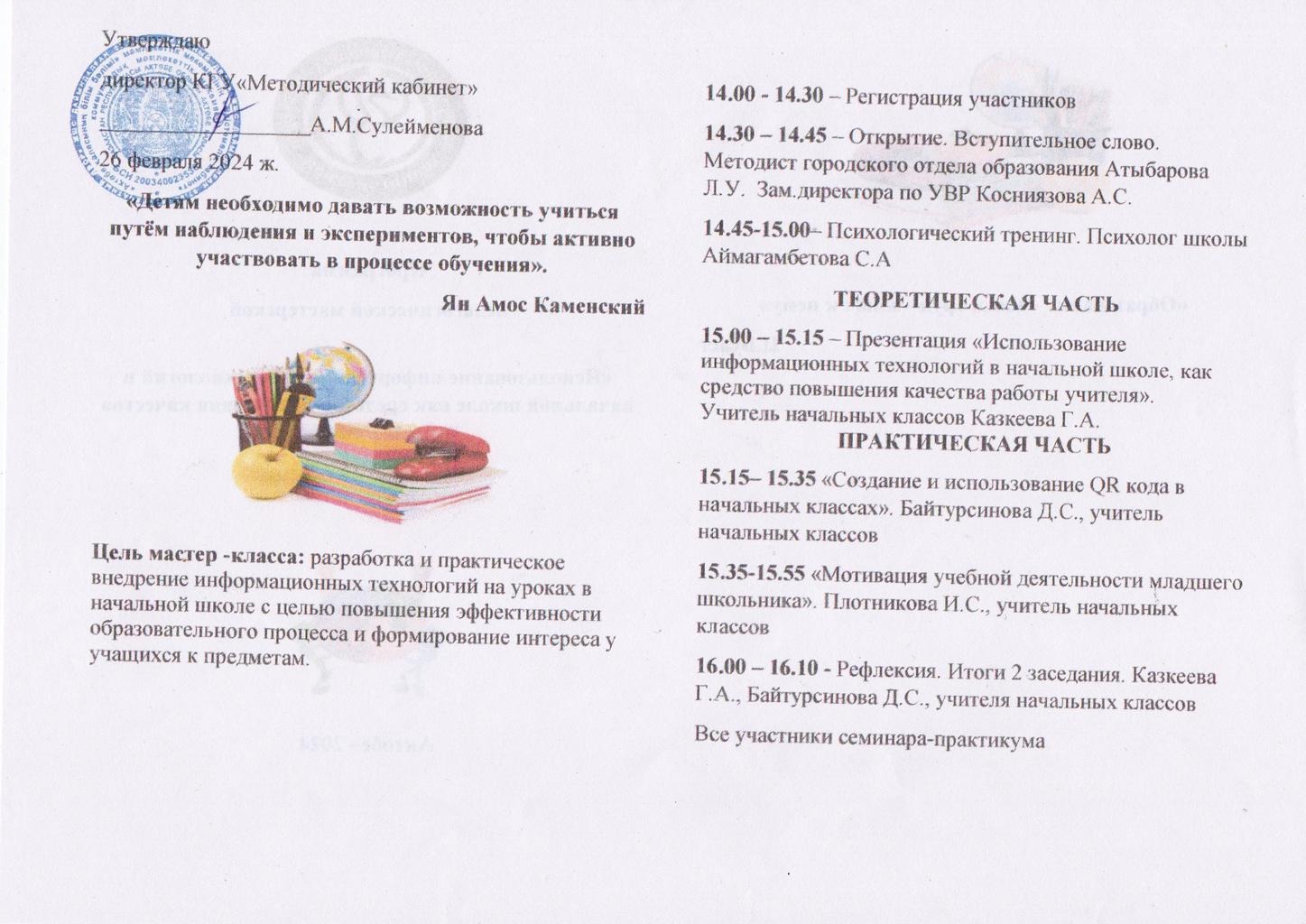 Обучающий семинар "Использование информационных технологий в начальной школе, как средство повышения качества работы учителя", 2024 г.