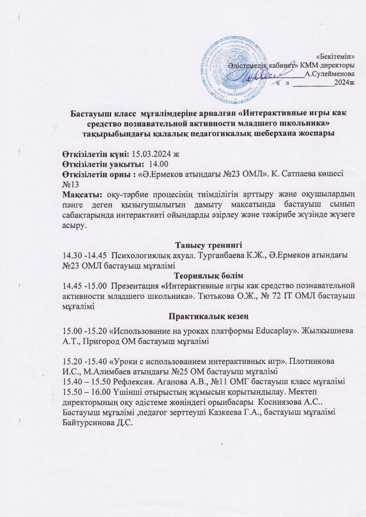 Обучающий семинар "Интерактивные игры как средство познавательной активности младших школьников", 2024 г.