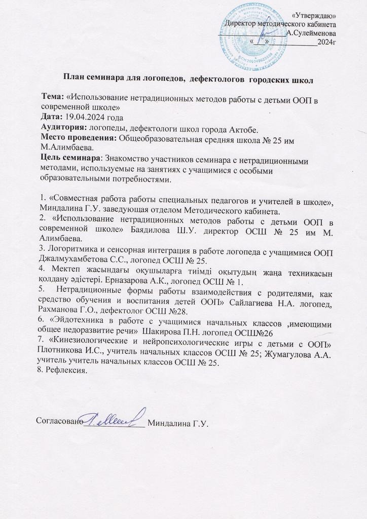Обучающий семинар "Использование нетрадиционных методов работы с детьми ООП в современной школе", 2024 г.